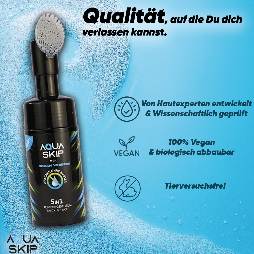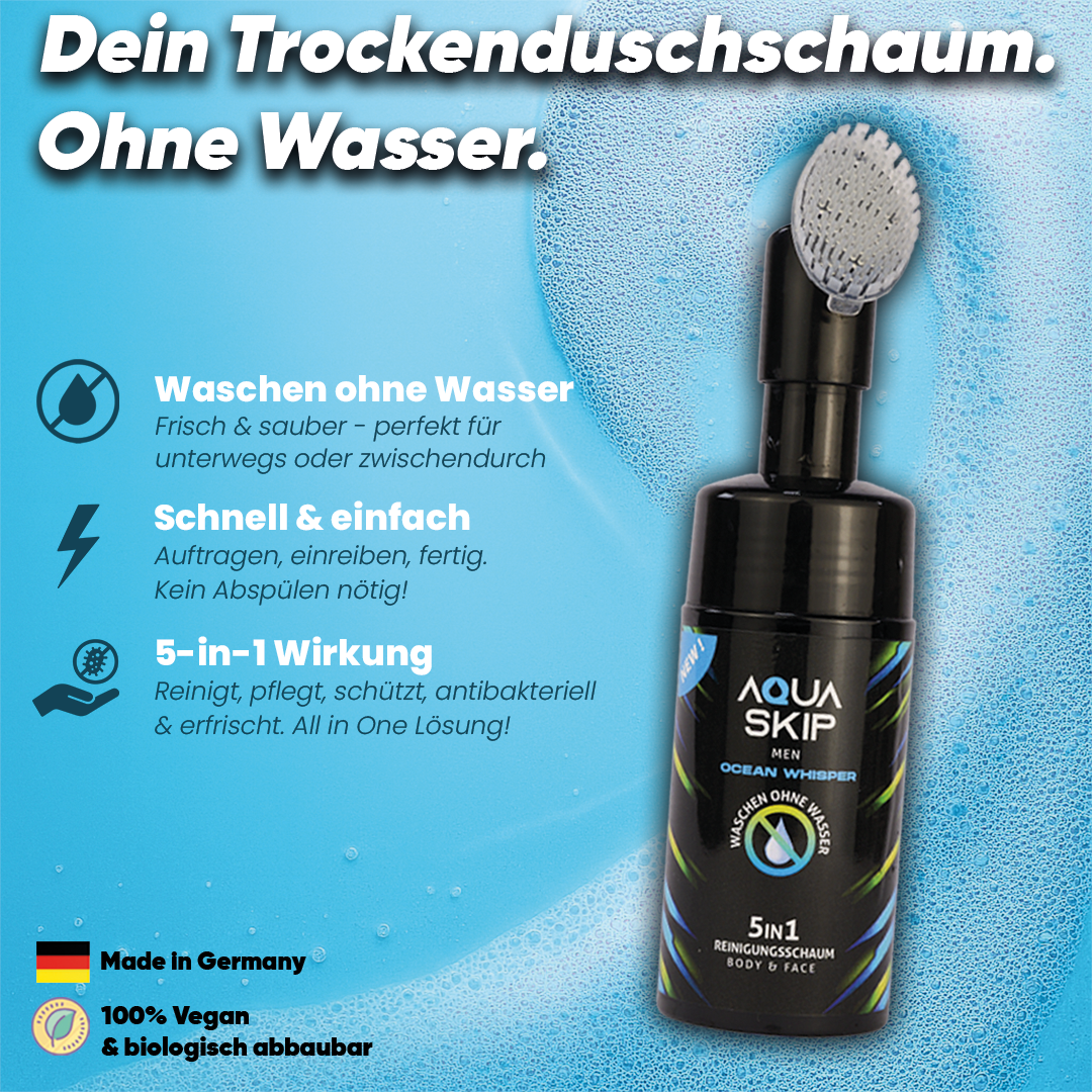 AquaSkip klebt nicht, kleckert nicht, duftet angenehm und ist praktisch in der Anwendung. Körpergeruch bleibt aber dennoch in Ansätzen vorhanden und wird eher übermalt statt beseitigt. Für eine schnelle Lösung, wenn keine Dusche in der Nähe ist, trotzdem empfehlenswert. Ich fühle mich damit ein bisschen sauberer.